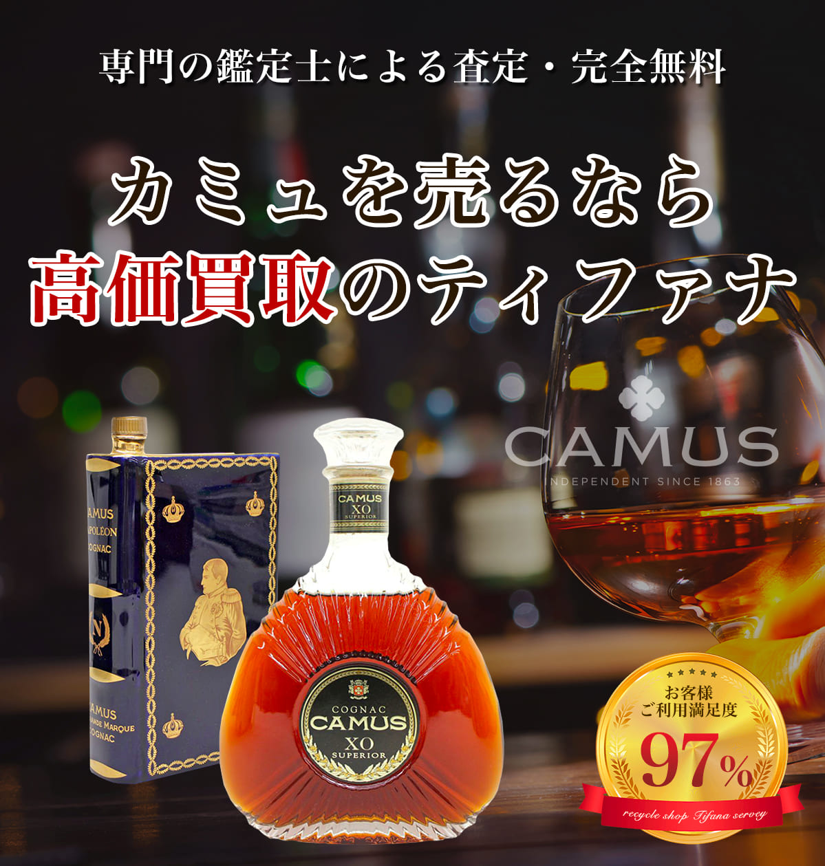 ブランデーは未開封であっても長期間の保有によって沈殿物(澱)が発生してしまうことが多くあります。ティファナではカミュをしっかり買取させて頂きますのでご安心下さい。