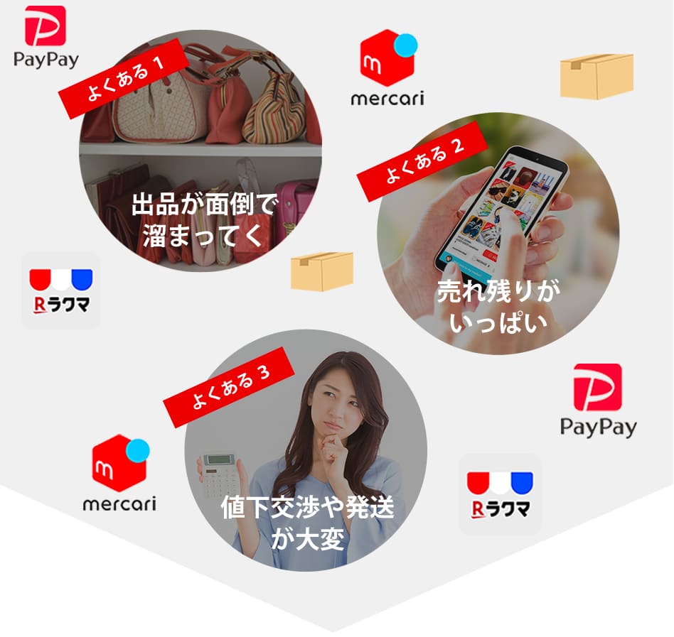 出品が面倒で溜まっていく、売れ残りがいっぱい、値下げ交渉や発送が大変