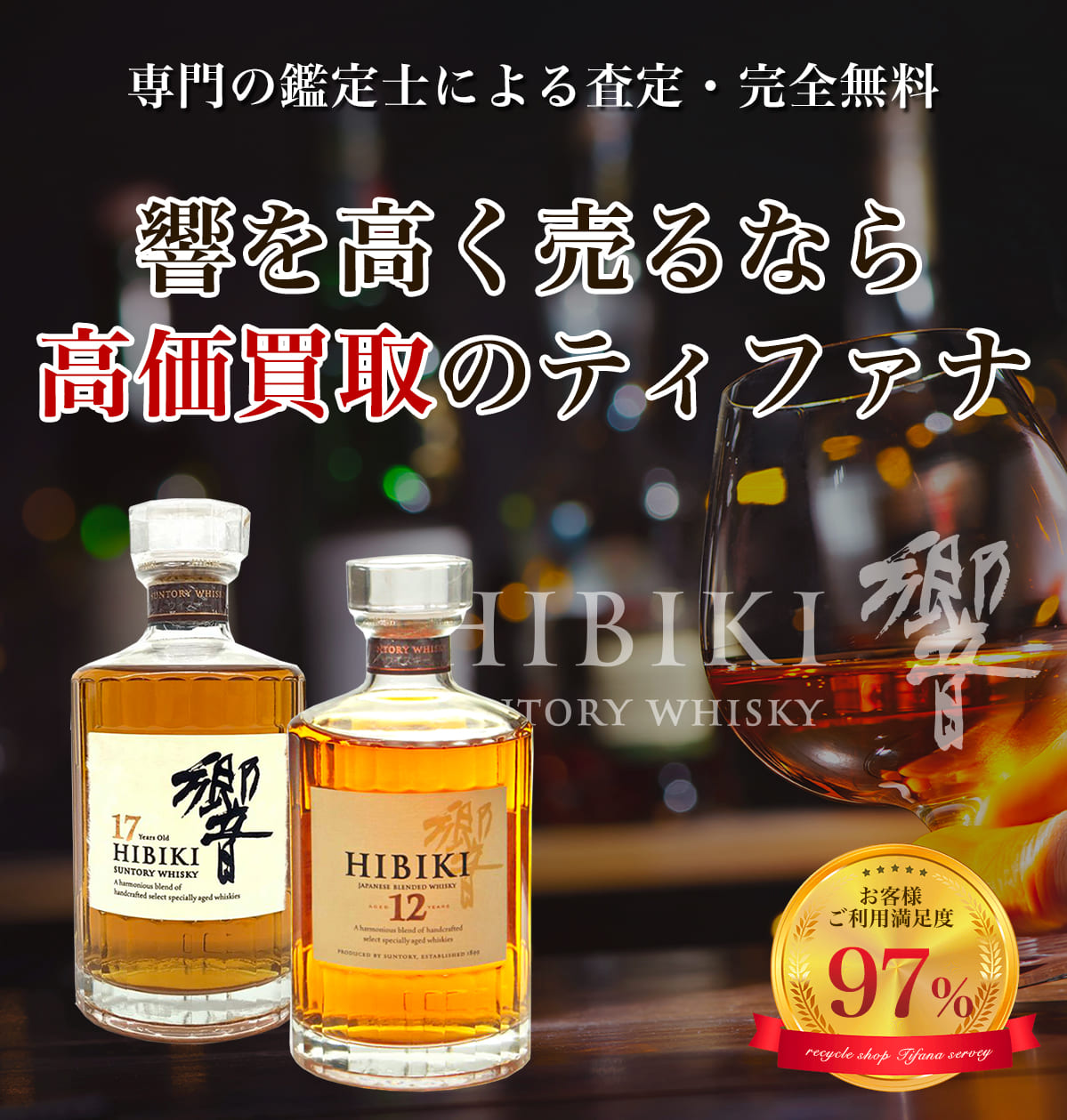 ティファナでは長年のコレクション品だった年代物の響や、ボトルの状態が悪い響もお買取いたしております。古酒、ヴィンテージのウイスキーもお任せ下さい。未開栓品に限られてはしまいますが、他社で断られてしまったものでも諦めてしまわず、お気軽にティファナのライン見積もりで無料の査定をご利用ください。